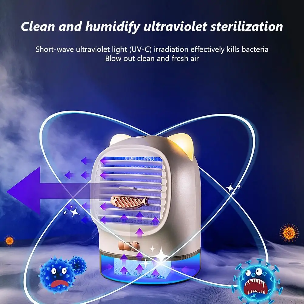 Портативный Lucky Cat USB светодиодный кондиционер, УФ-дезинфекция, увлажнитель, охлаждающий вентилятор