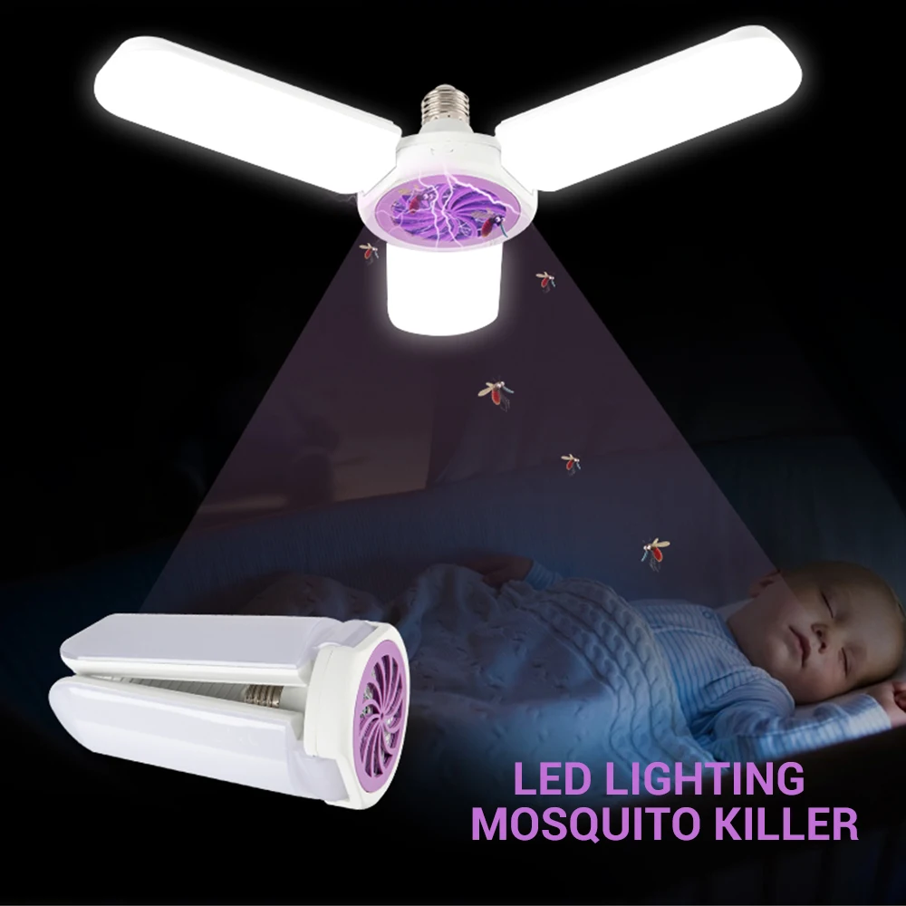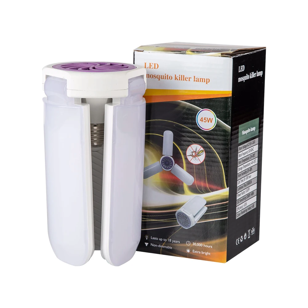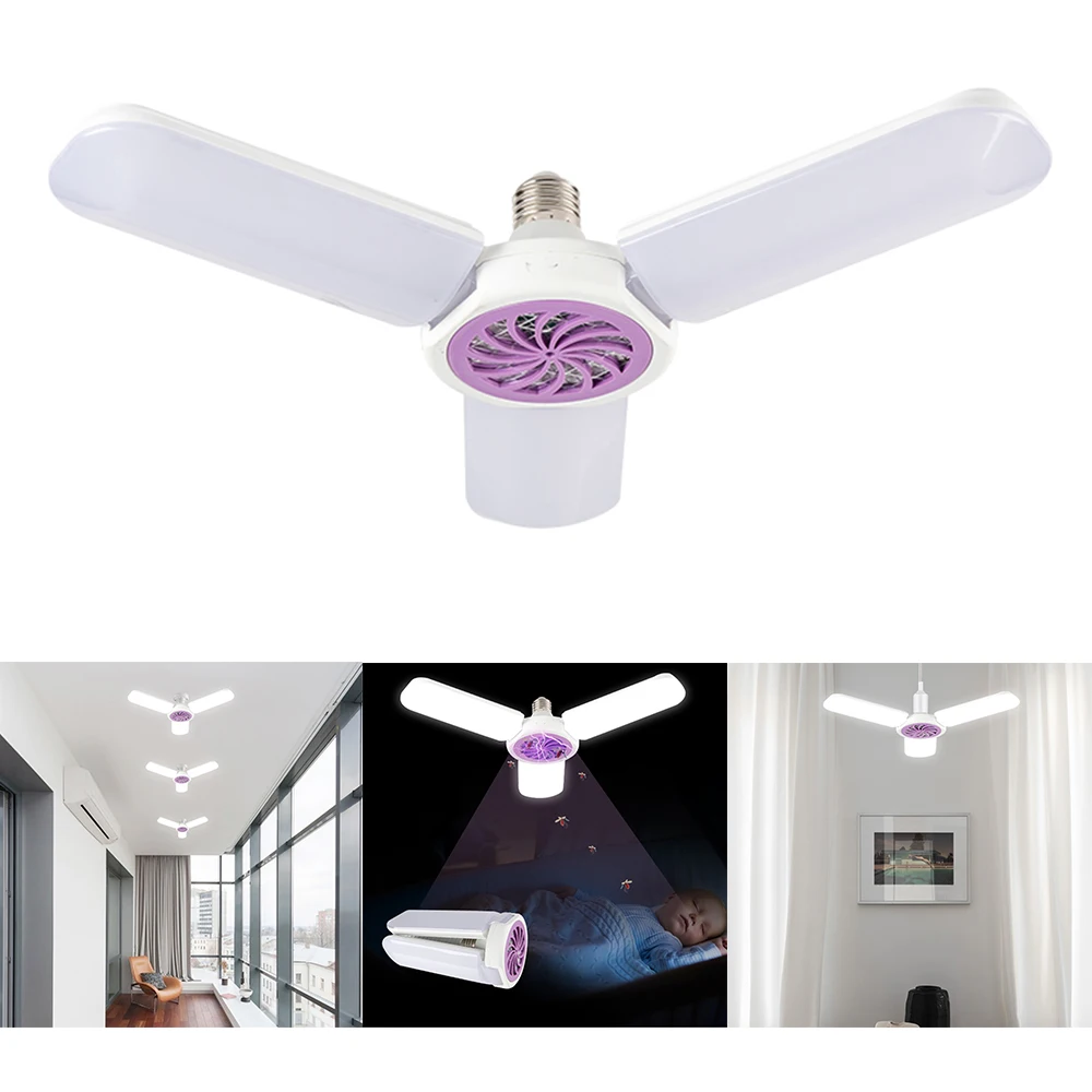 Отзывы о Складная Светодиодная лампа E27 с тремя листьями для уничтожения комаров