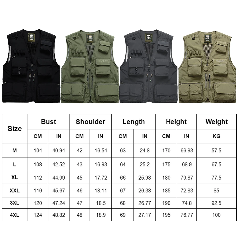 5. Этот универсальный жилет для разборки имеет четыре цвета и M-4XL размеров на выбор. Вы можете выбрать правильный продукт в соответствии с размером таблицы, которую мы предоставили. Это удовлетворит Вас.