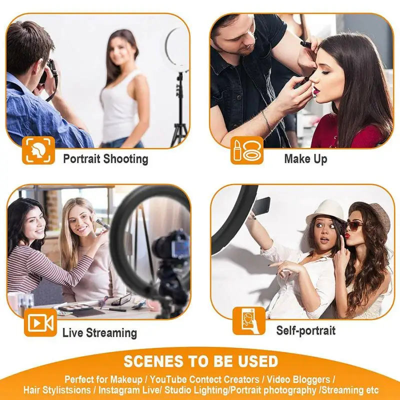 USB POWEREDL: usb-порты могут использоваться с несколькими устройствами, например, с подключением USB зарядного устройства, мобильным питанием, хостом компьютера и ноутбуком. Просто наслаждайтесь светодиодный кольцевой светильник в любое время.