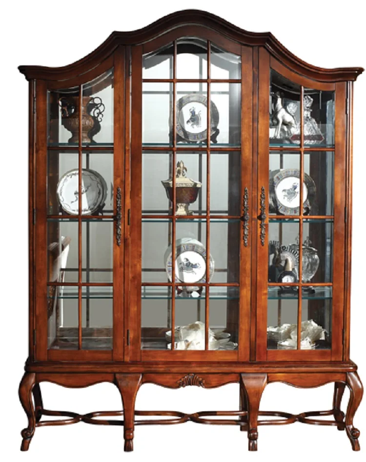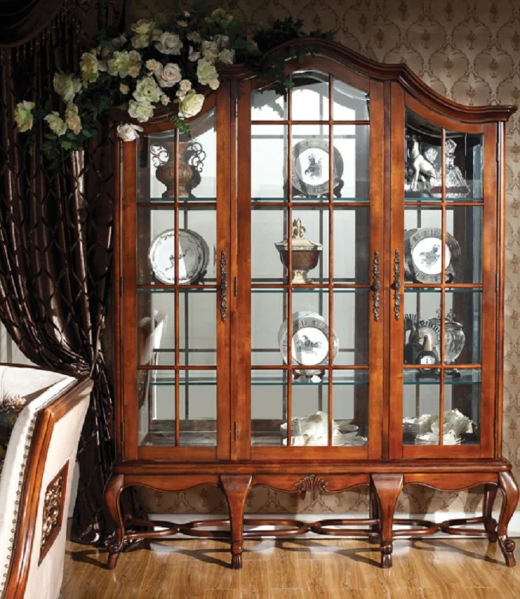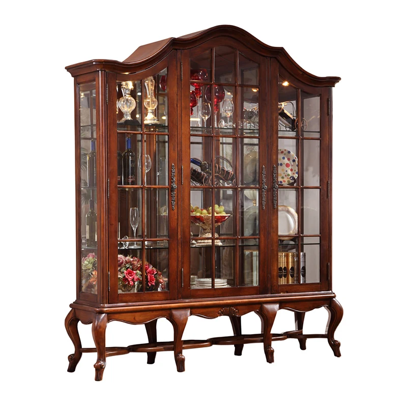 Отзывы о Деревянный стеклянный античный обеденный сервант Классический шкафчик для