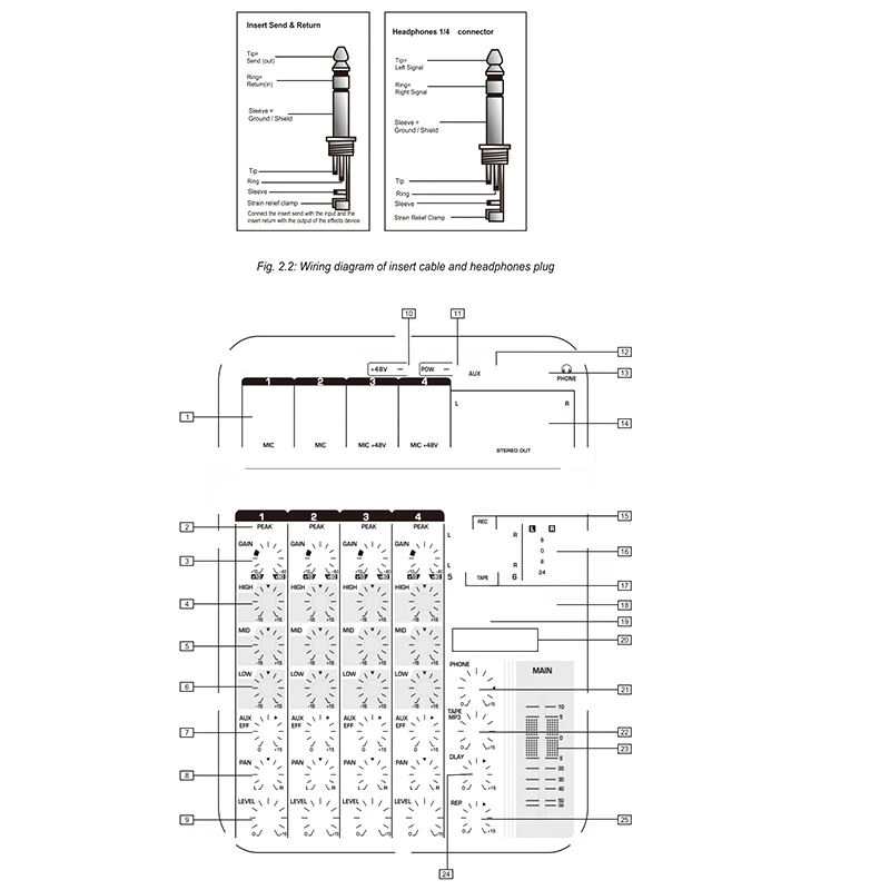 3-полосный эквалайзер на всех каналах, высокочастотный диапазон HI-контроллеров, Средний контроль увеличивает/режет средние частоты, а низкий контроль увеличивает/уменьшает усиление диапазона басов.