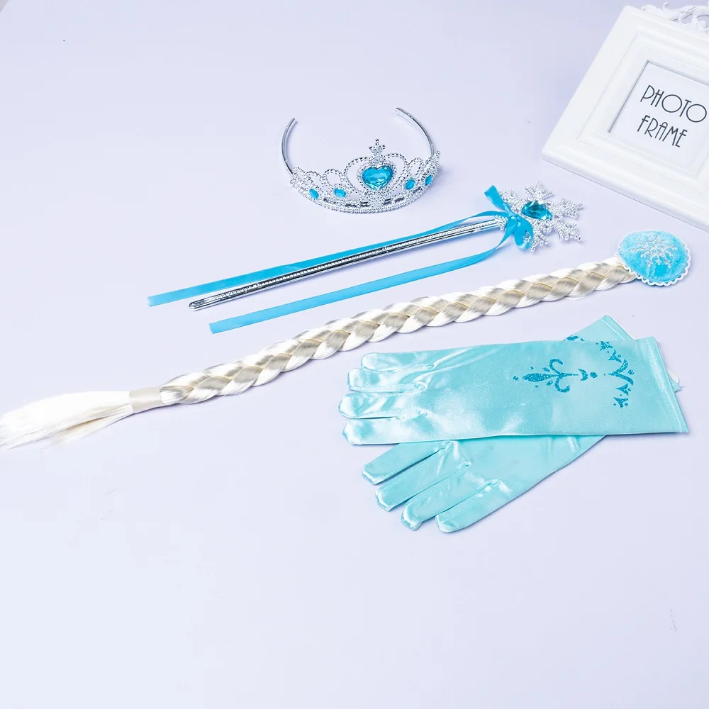 4 5pcs/lot Princess Dress Up Costume Accessories E L S A Set For Princess Cosplay Gloves Tiara Wand