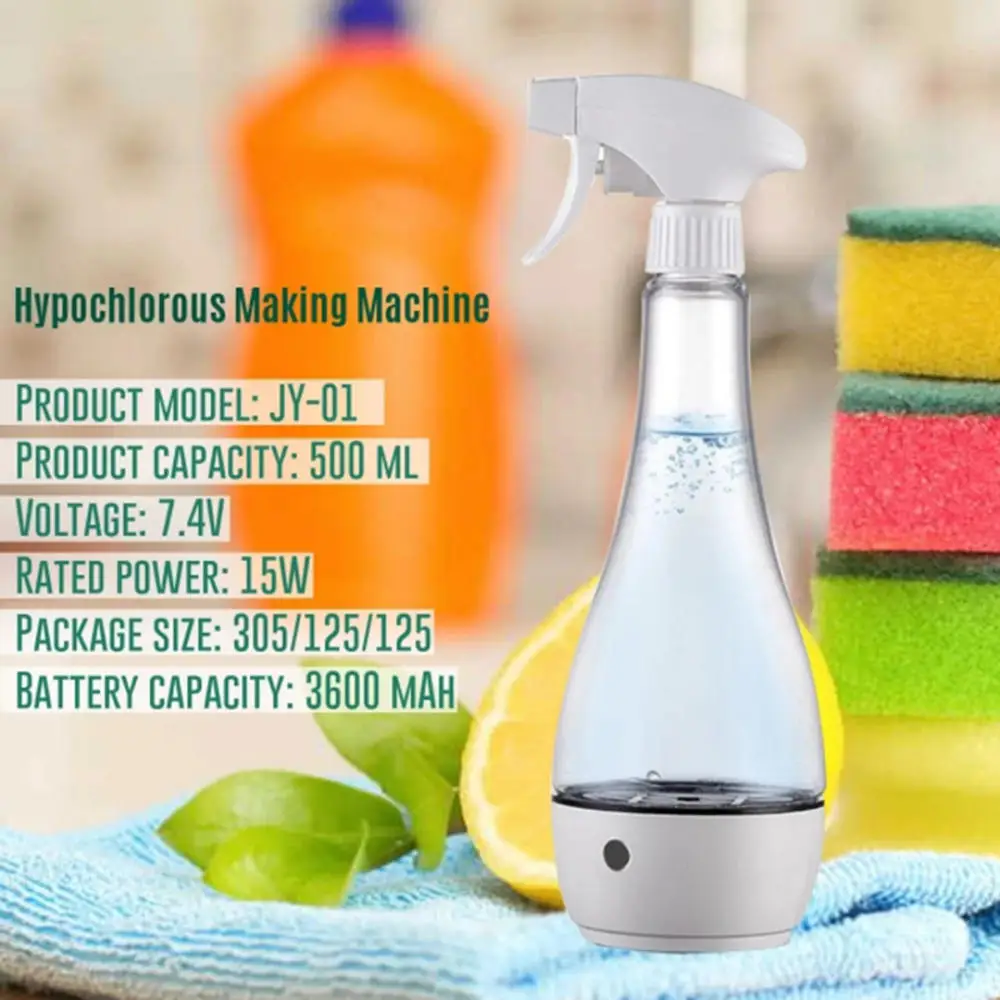 -Само-сделанное дезинфицирующее средство безопасно и безвредно, скорость стерилизации достигает 99.99%. -Удаление пятен и стерилизация для подавления вируса, этот продукт может эффективно удалять Остатки пестицидов, пятна мочи, масляные пятна, пятна чая и другие упорные пятна, С коэффициентом стерилизации 999% эффективно подавляет различные вирусы. -Вирусы чувствительны к ультрафиолетовому излучению и нагреву, 56 ° C в течение 30 минут, эфир 75% Z спирт может эффективно деактивировать вирус. -Используется для дезинфекции, антивируса, антибактериального, свежего, дезодорирования. Вы можете легко сделать дезинфекционный раствор самостоятельно, который может устранить много бактерий, распространенных в доме. Светильник советы: Синий светильник, занимает 5 минут Фиолетовый светильник, Производство занимает 10 минут Красный светильник, для зарядки Greenlight, полностью заряжен Батарея мигает красным, когда не слышно питание, длинный звуковой сигнал Непрерывный звук напоминания для защиты от перегрузки соли Инструкции по использованию: 1. Залейте 500 мл водопроводной воды в дезинфицирующее средство генератора, затем положите 20 грамм съедобной соли, не затягивайте распылительную головку. 2. Нажмите и удерживайте переключатель в течение 1 секунды, чтобы включить устройство. Время начала производства дезинфицирующего средства с низкой концентрацией составляет 5 минут, и синий светильник включается одновременно. 3. После того как дезинфекционный раствор сделан, светильник индикатора выключается, а затем распылительная головка прикручивается, и может использоваться дезинфекционный раствор. Для метода использования обратитесь к методу, показанному в руководстве. 4. После использования, излишки дезинфекции воды можно хранить в резервуаре для хранения жидкости и помещать в прохладное место, обычно около 20 дней. Раствор для дезинфекции рекомендуется использовать немедленно, чтобы обеспечить лучший эффект дезинфекции. Технические характеристики: Тип: гипохлорная машина Модель продукта: JY-01 Емкость продукта: 17,63 унций/500 мл Напряжение: 7,4 V Номинальная мощность: 15 Вт Емкость аккумулятора: 3600 мАч Посылка включает в себя: 1x хлорноватистой делая машину 1x кабель для зарядки 1x мерная ложка (Не включая жидкости)