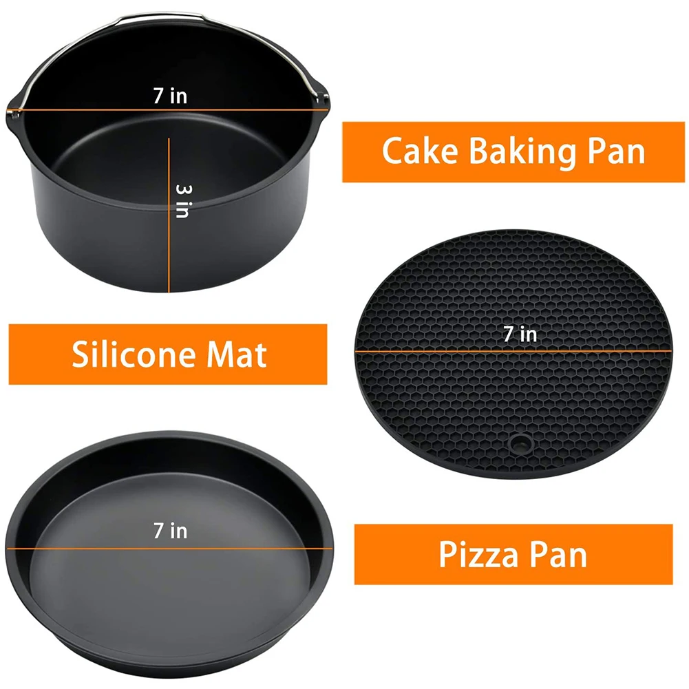 - The size of this set is 7 in, thus our accessory set fits 3.2QT – 5.8QT of most brands deep air fryer, likes(for) Gowise, Phillips, Cozyna. This set can also be used in oven, instant pot and microwave.