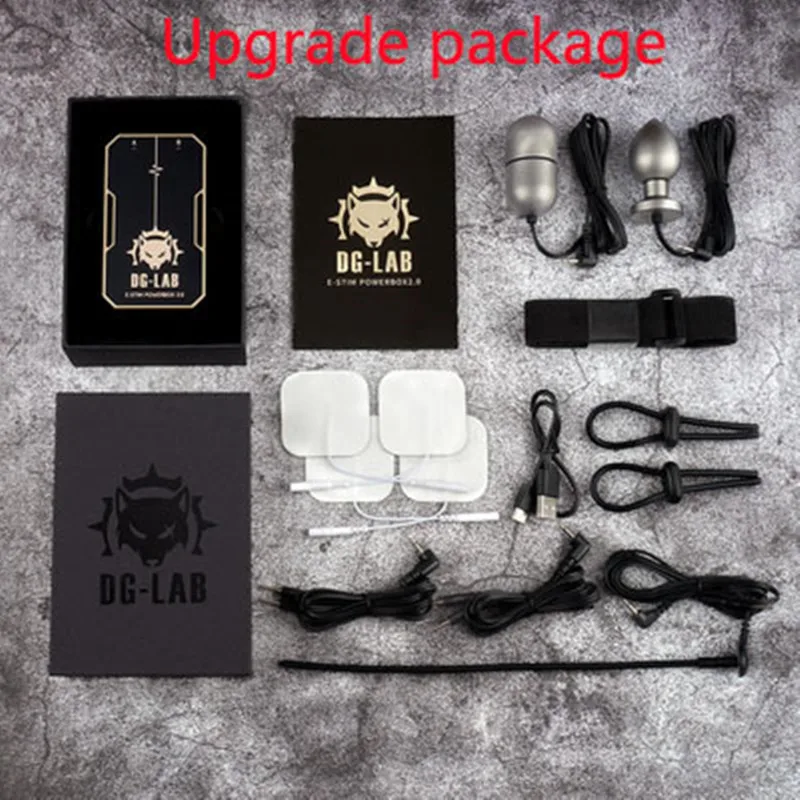 Основная посылка: 1 * блок питания и 1 * USB кабель и 4 шт. патч и 2 шт. кабель и 1 * Носимый ремень Обновленная посылка: 1 * блок питания и 1 * USB кабель и 4 шт. патч и 2 шт. кабель и 1 * Носимый ремень и 1 * штекер для пениса и 2 * Кольца для пениса и 2 * Анальная пробка