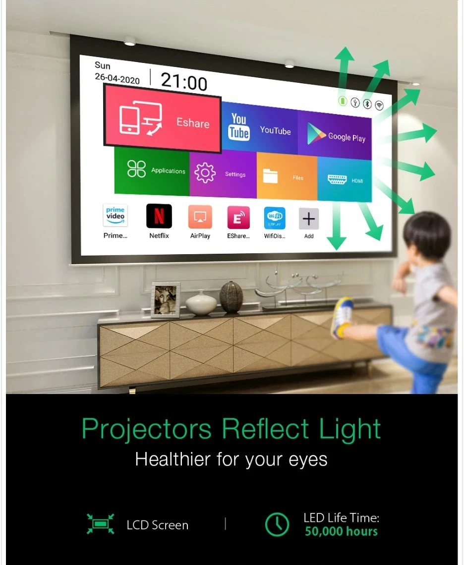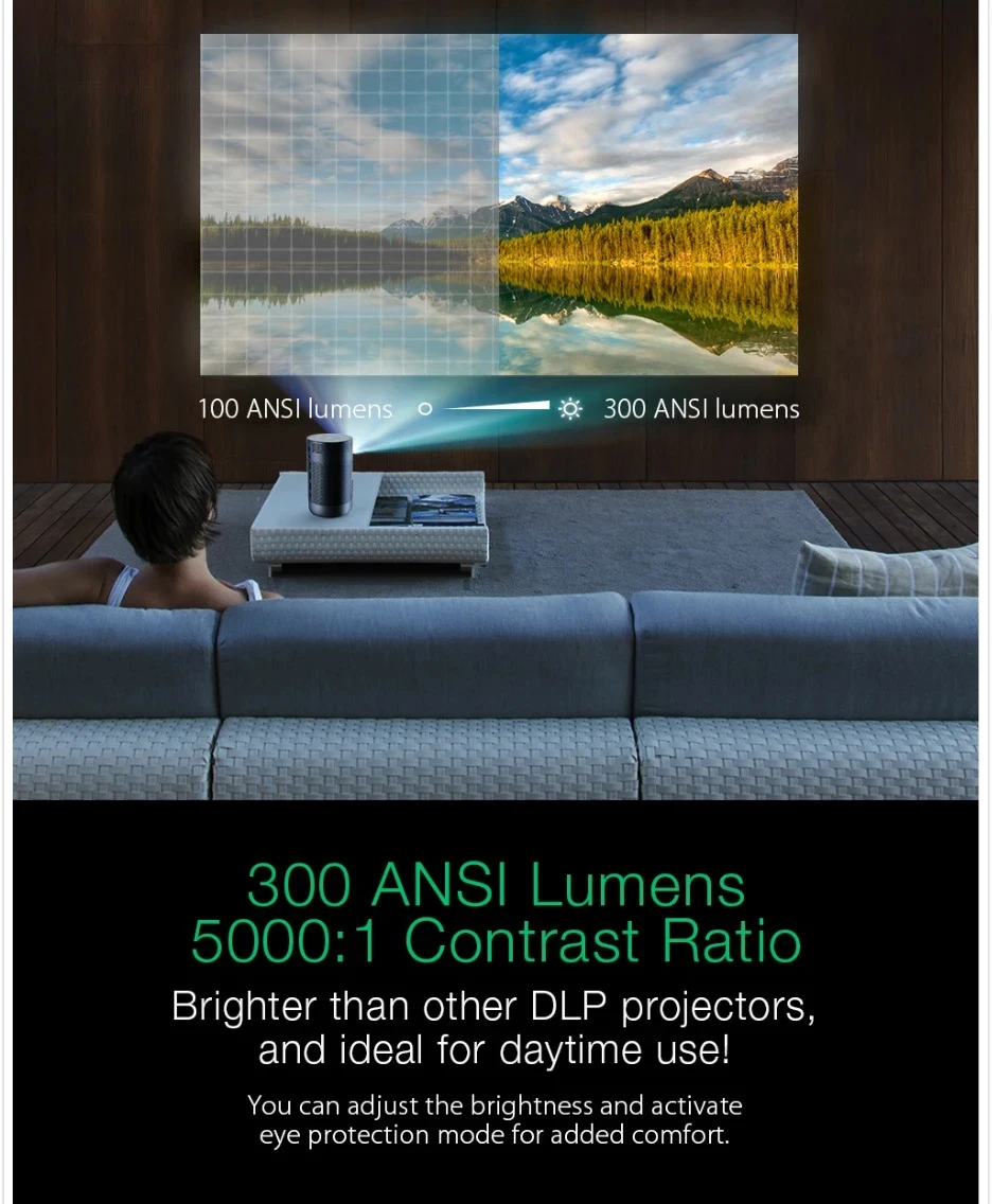 -Больше яркости, чем DLP-проектор, просто наслаждайтесь ярким визуальным восприятием даже днем!
