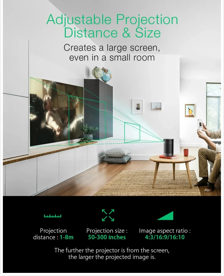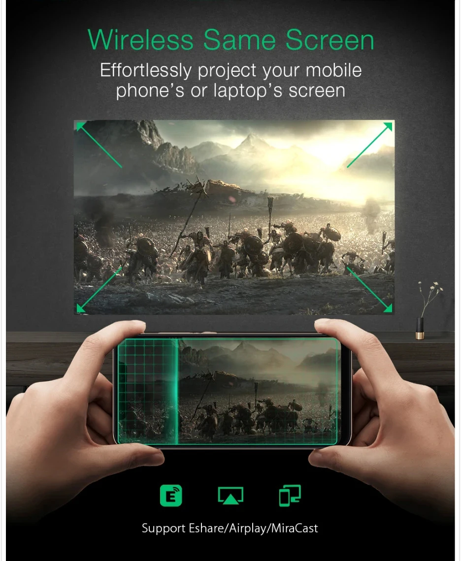 -Изображение на телефоне или ноутбуке можно проецировать на большом экране, наслаждайтесь лучшим визуальным изображением