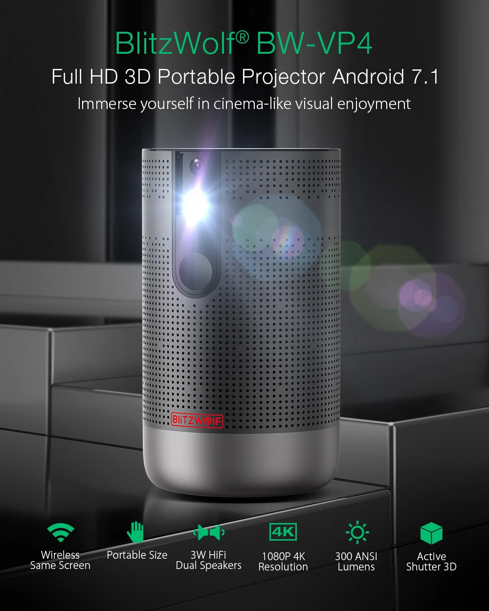 Отзывы о Проектор BlitzWolf BW-VP4 1920x1080 Full HD Android 7 1 (2 ГБ + 16 ГБ) 5G Wi-Fi проектор DLP поддержка 4K 3D зум