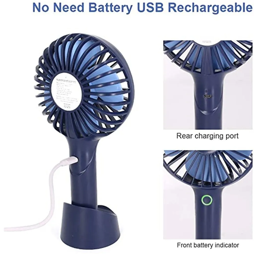 Work While Charging: Get power supply from USB devices such as powerbank,computer,laptop,USB charger. Handheld portable fan is able to continuous work when it connects with a power supply. Places into the base(included),it can become a normal hand desk fan. Takes 2.5hours to get fully charged.