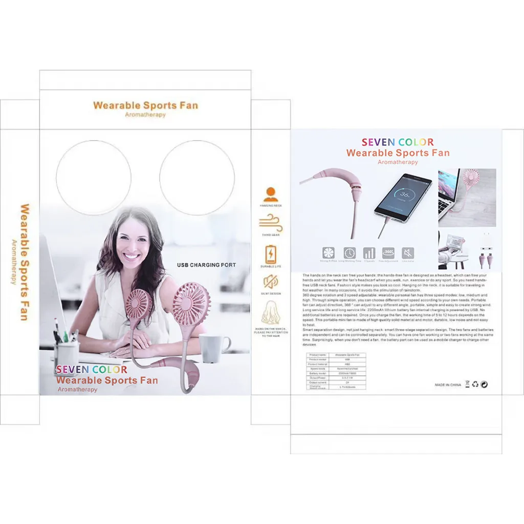 Портативный USB Перезаряжаемый ленивый вентилятор подвесной шейный мини охлаждающий спортивный двойной вентиляторОсобенности: