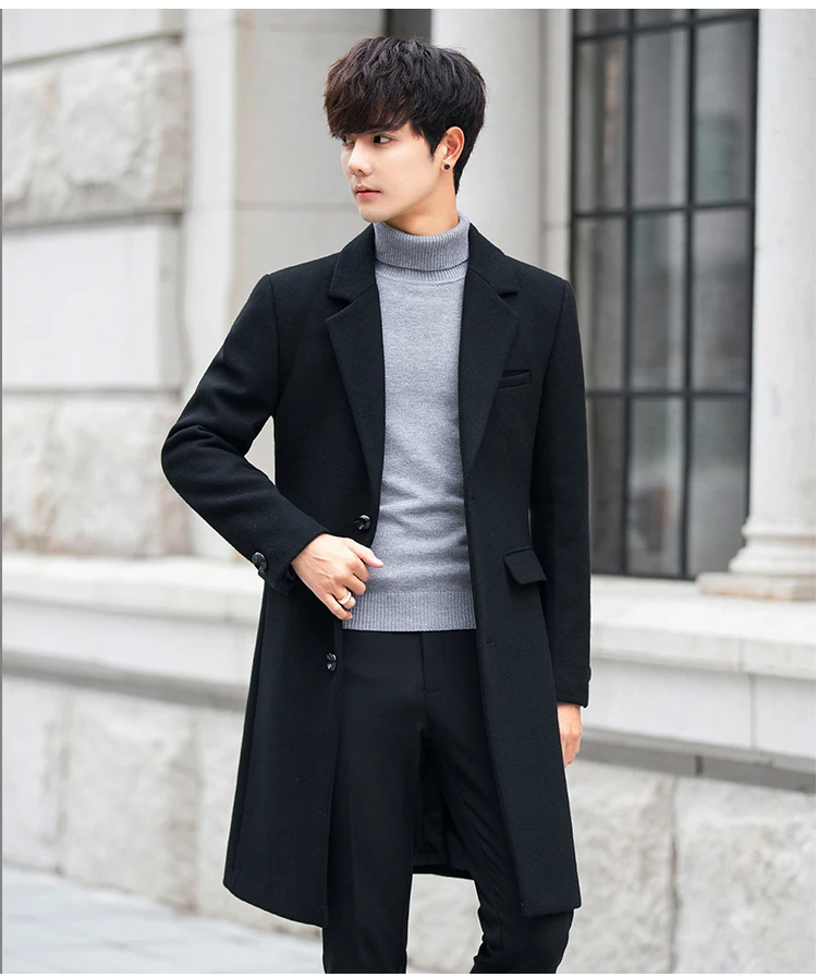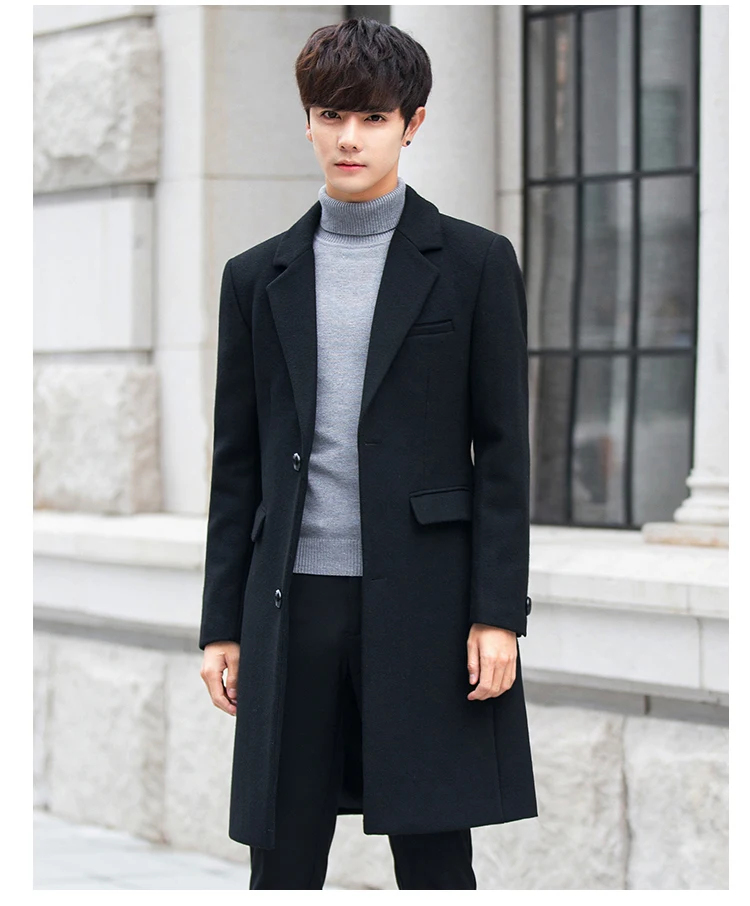 Отзывы о Шерстяное пальто черная длинная зимняя куртка мужские повседневные верхняя