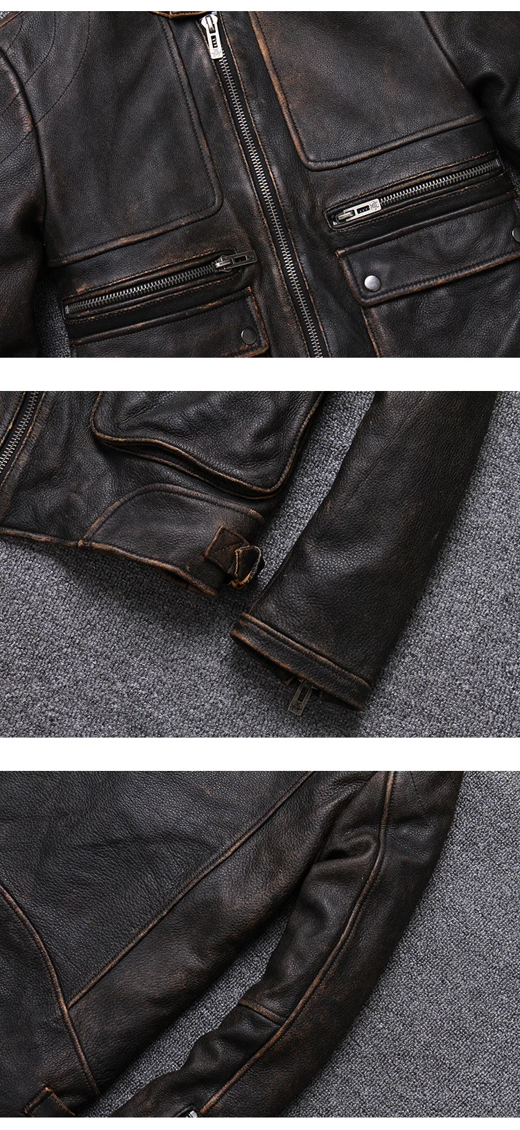 Отзывы о Мужская осенняя куртка из натуральной кожи Коричневое Пальто коровьей новинка