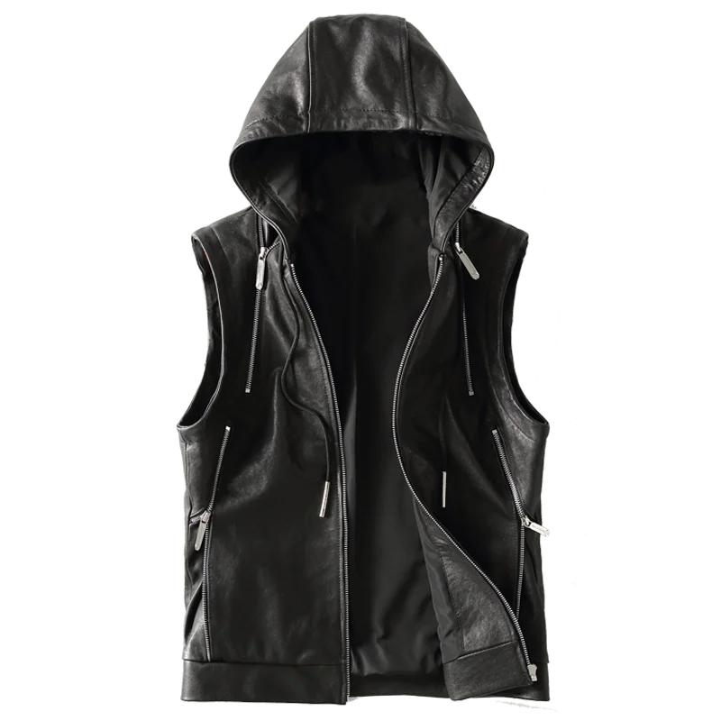 Отзывы о Жилет мужской из натуральной кожи с капюшоном KFS22M025 | Мужская одежда