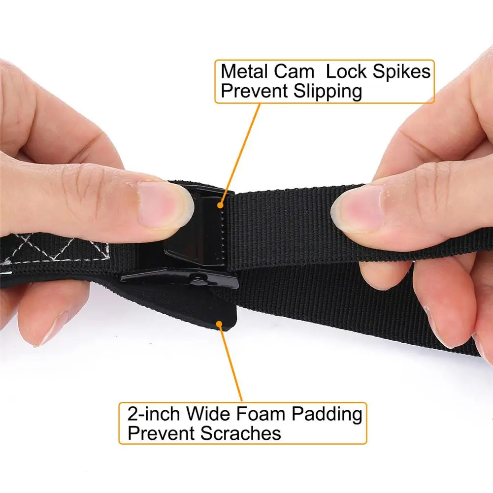 Ремни с толстой поролоновой прокладкой и пряжкой из нержавеющей стали предназначены для предотвращения царапин вашего автомобиля и груза.Закрепите лямку с помощью быстросъемного металлического кулачкового замка.