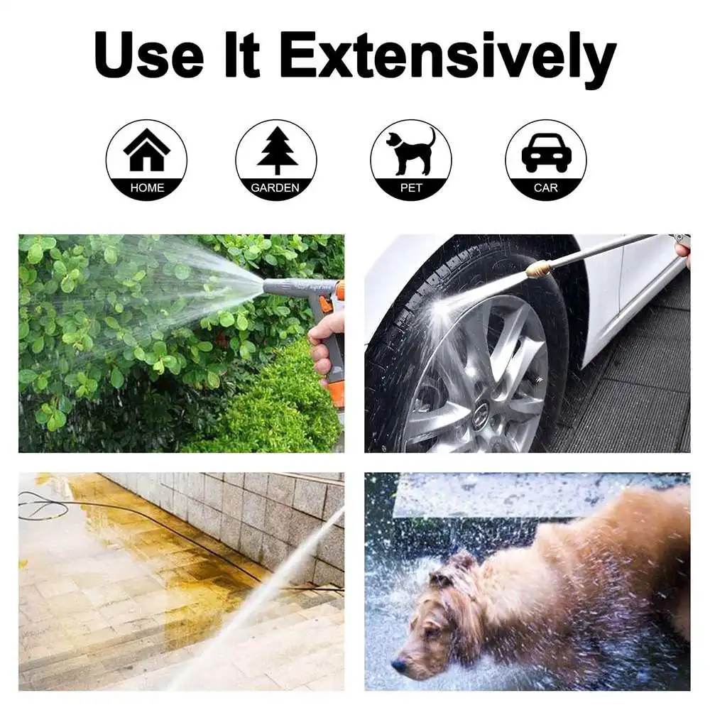 2. 7 Functional Spray Nozzles: Adjusting the nozzle that fits best for your Gardening needs. This garden hose is suitable for watering grass, flowers, vegetables, washing your lawn, cleaning windows, washing car or floors for your house and workshop, car-washing shop, RV, pool, boat, etc. Your pets will also like it.