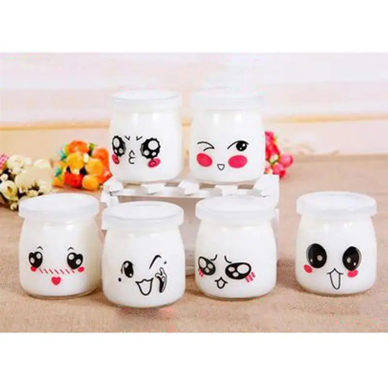Эта милая бутылка для йогурта имеет коническую шею и Толстый Стеклянный обод. Вы можете использовать эти многоразовые маленькие стеклянные банки, чтобы создать уникальные вечерние сувениры или закуски, или использовать их для Хранения Домашней пищи или йогурта! Каждая баночка для йогурта поставляется с разным мультяшным рисунком лица, выглядит очаровательно и порадует ваших вечерние гостей.