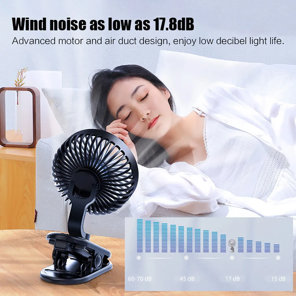 Вращающийся на 360 ° usb-вентилятор с зажимом Настольный студенческий маленький бесшумный электрический вентилятор