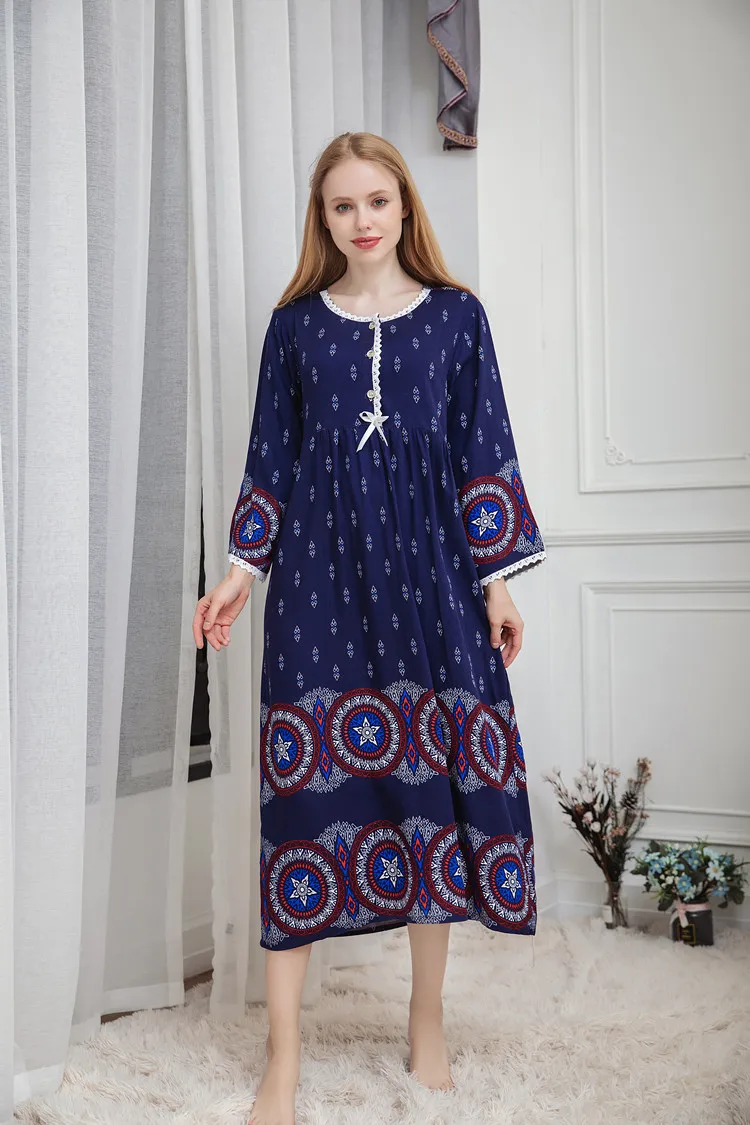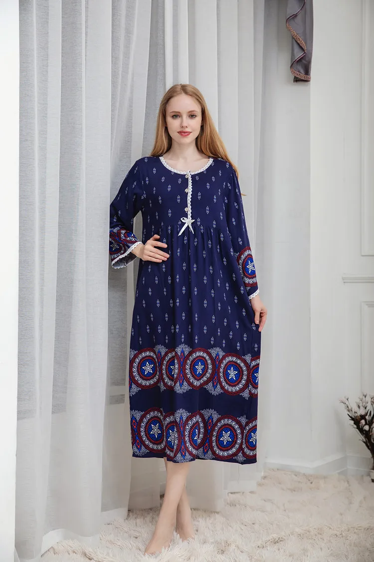 Отзывы о Женская ночная рубашка с принтом на весну и осень хлопковое свободное платье