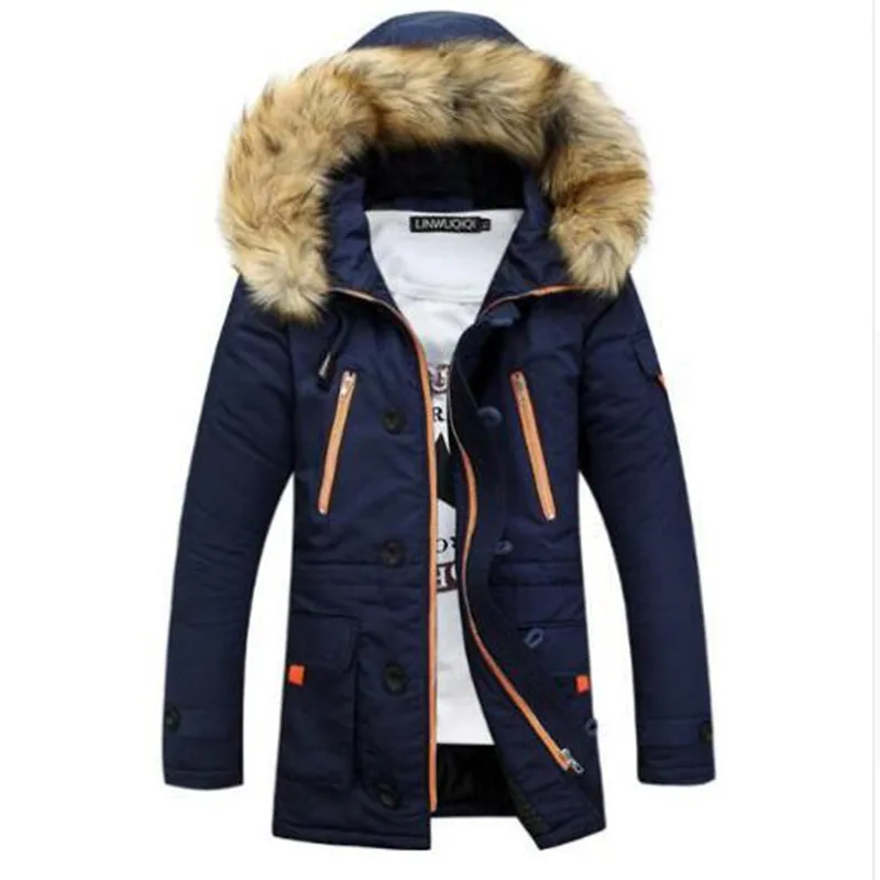 Зимняя мужская куртка, 2018, брендовая Повседневная теплая парка, мужская мода, съемный меховой воротник с капюшоном, утепленные мужские куртки, верхняя одежда, размер S-3XL