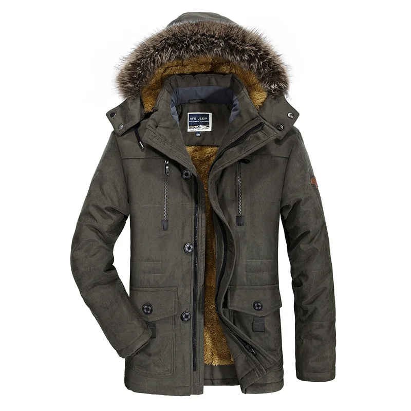 Мужская Утепленная куртка с длинным меховым воротником, парка армейского зеленого цвета из флиса и хлопка, куртка для зимы, 2019