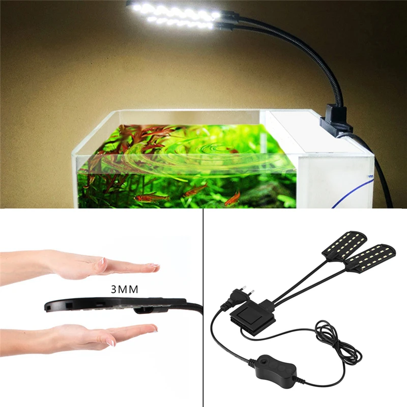Аквариумный светодиодный светильник для водных растений, тонкий светильник с зажимом для аквариума, европейская вилка, 15 Вт, синий и белый свет, 5730 светодиодный, светильник для выращивания аквариумных растений