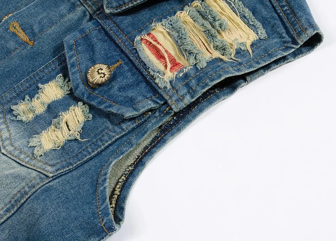 Отзывы о Для мужчин рваный дизайн s джинсы жилет Винтаж куртка без рукавов протертые синие