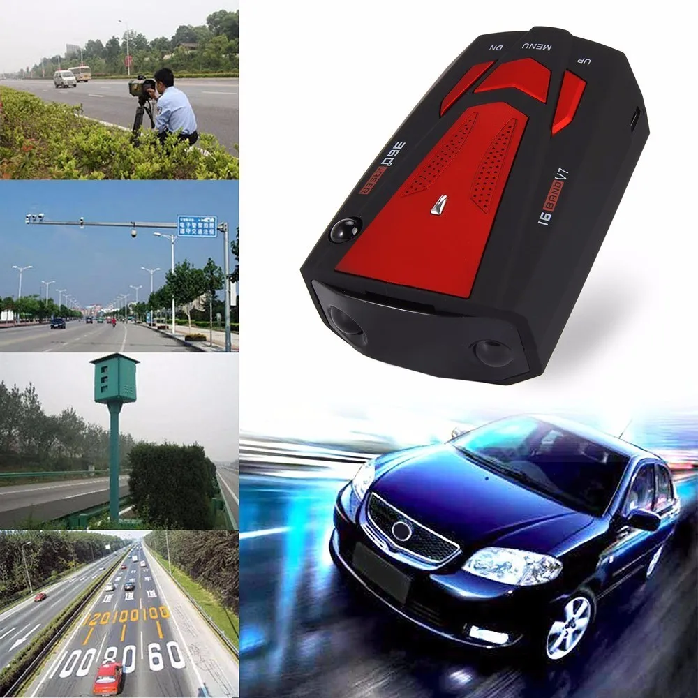Авто 360 градусов Автомобильный антирадар детектор для красного транспортного средства V7 голосовое предупреждение о скорости с 16 диапазоном светодиодный лазерный детектор