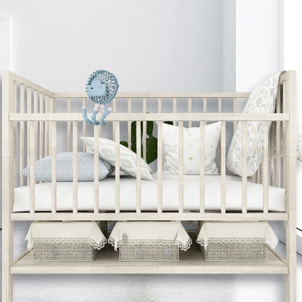 Вентилятор для коляски с батарейным питанием, гибкий штатив, зажим для вентилятора с 4 скоростями и вращением на 360 градусов, для автомобильных сидений, кроваток, велосипедной беговой дорожки