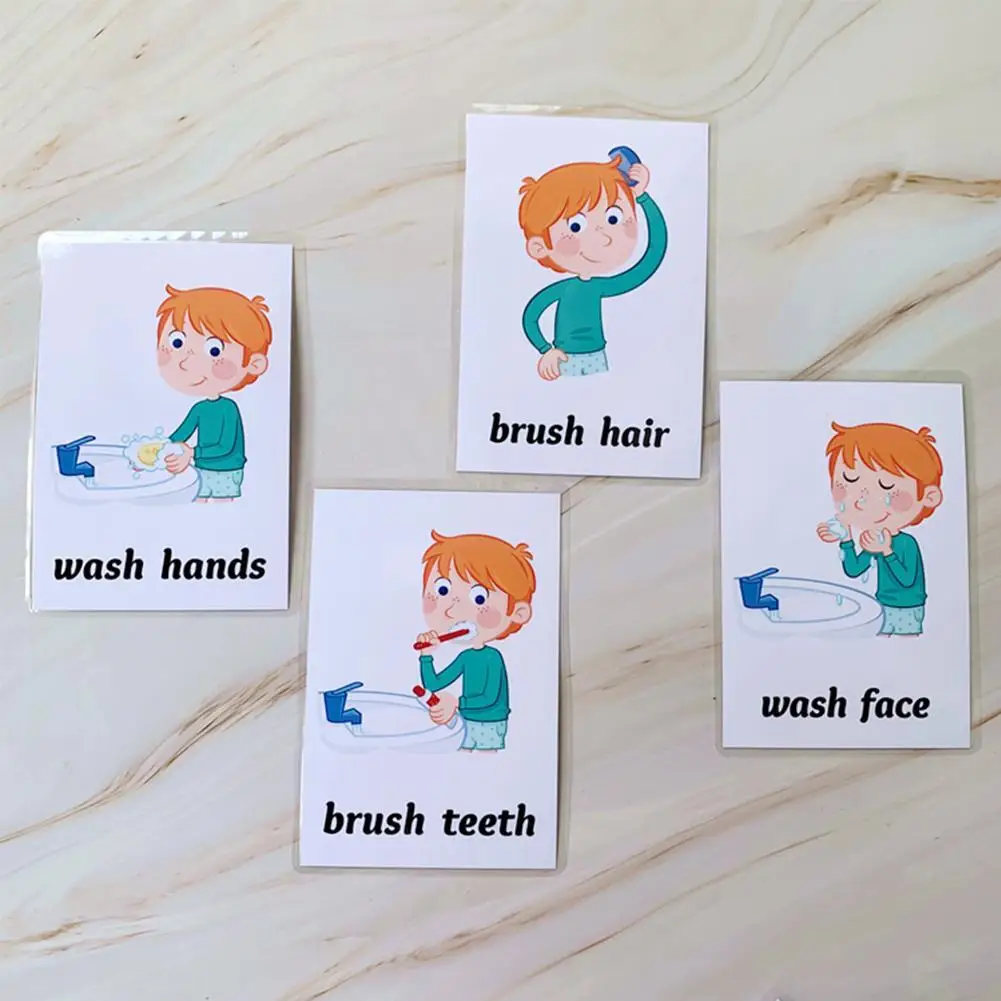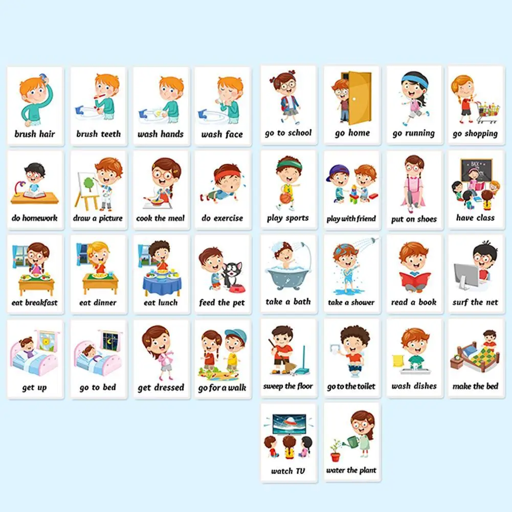 Название продукта: 34 Обучающие карты на английском языке для детей, детская флеш-карта с мультипликационным принтом для повседневного использования, Детские Игрушки для раннего обучения, игры с памятью