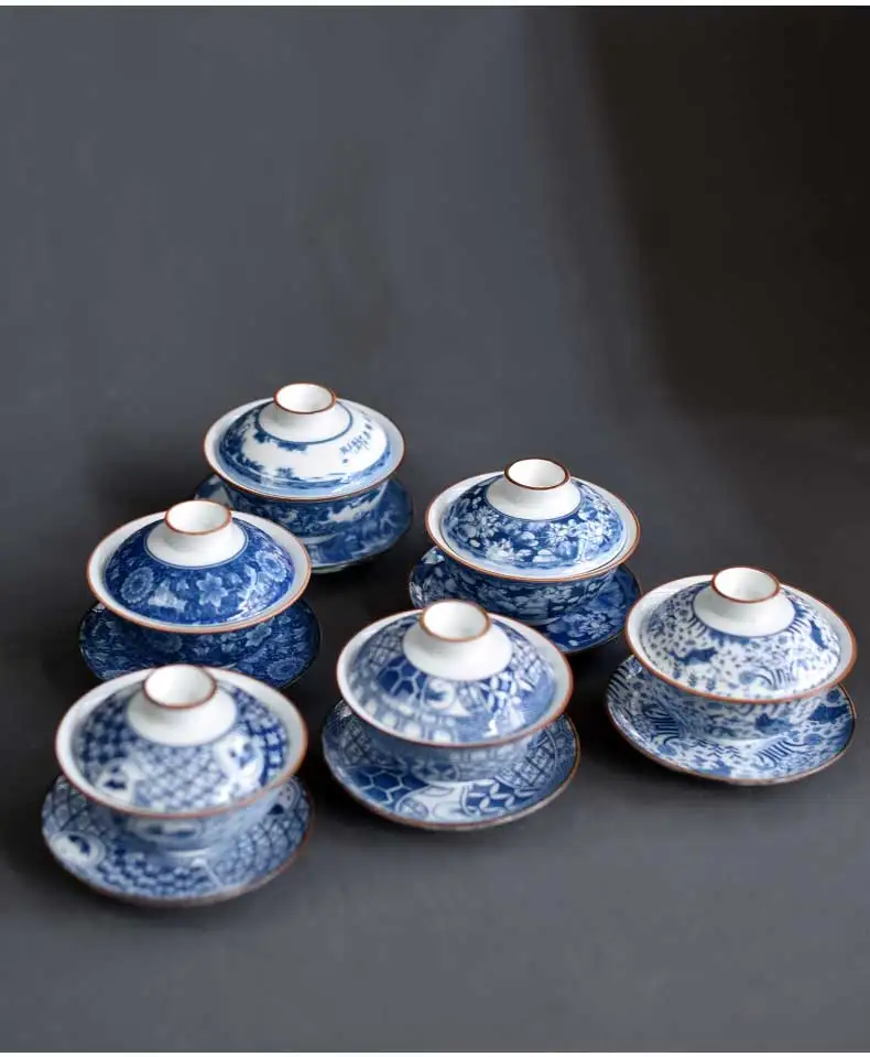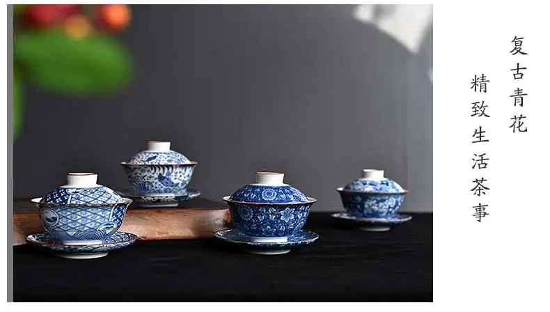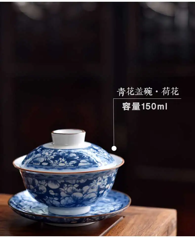 Отзывы о Сине-белая фарфоровая чаша с крышкой большой чайный набор кунг-фу Цзиндэчжэнь