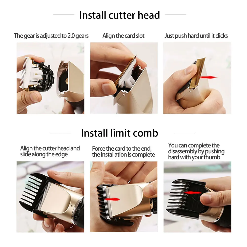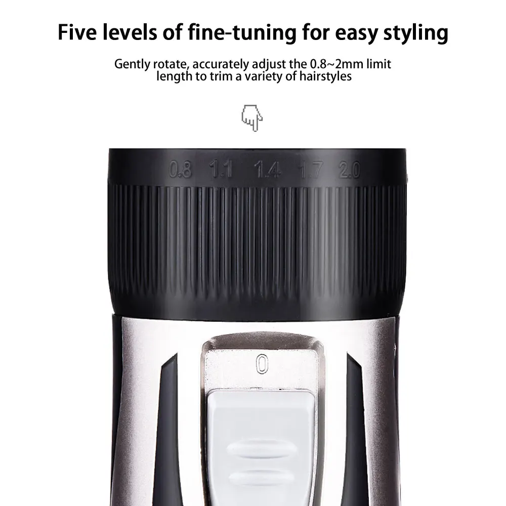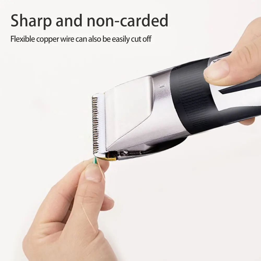 -Регулируемые кусачки можно изменить для регулировки длины обрезки. 0,8 мм/1,2 мм/1,4 мм/1,8 мм/2,0 мм. Также оснащен 6 направляющими расчески (3 мм, 6 мм, 9 мм, 12 мм).