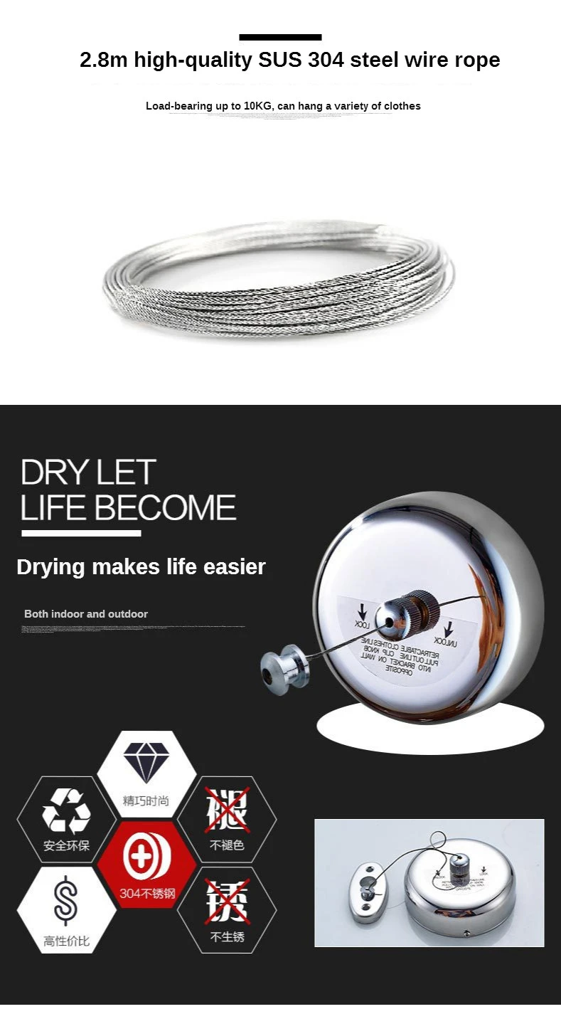 Отзывы о Трос для одежды выдвижной 304 нержавеющая сталь трос ванная комната отель