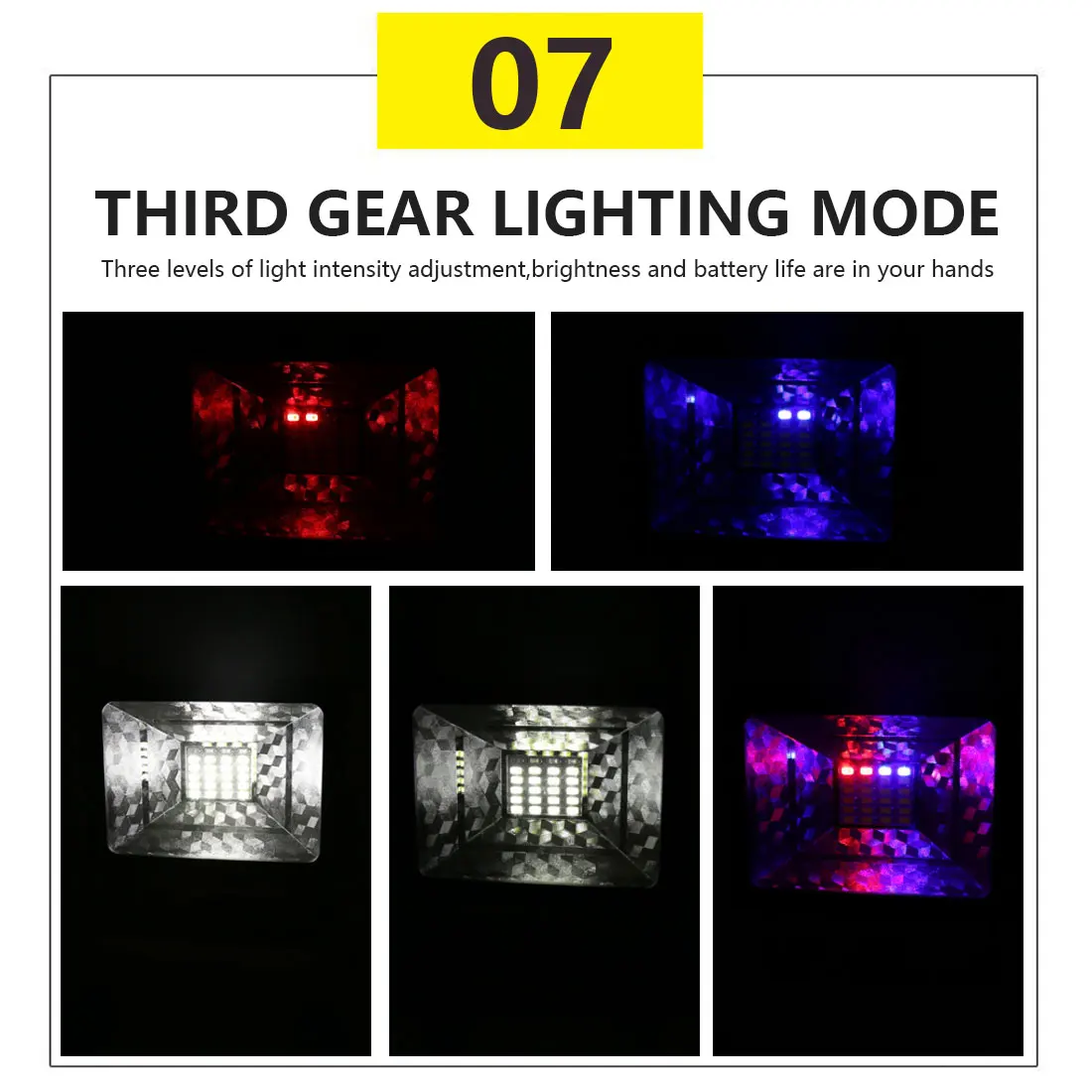 Есть два синий светодиодный и красный светодиодный лампы соответственно, которые подходят для функция оповещения в различных ситуациях, а также для того, чтобы предупредить водителей автомобилей о необходимости