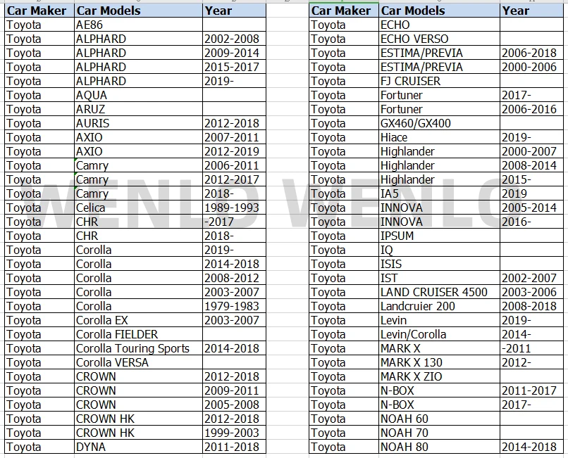 Подходящая модель: для Toyota Материал: полиэстер Цвет: черный Название бренда: WENLO Тип: солнцезащитные очки с боковым окном