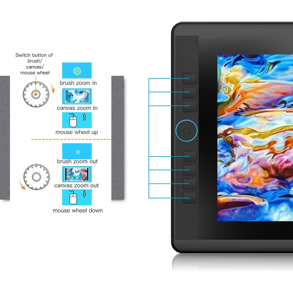 ✍[ 7 CUSTOMIZABLE SHORTCUT KEYS & A SCROLL DIAL] -- All keys in the graphic tablets for drawing can be customized according to your demand; Scroll Dial for brush/canvas zoom in/out and mouse wheel up/down, to make the operation more efficient, save your precious time.