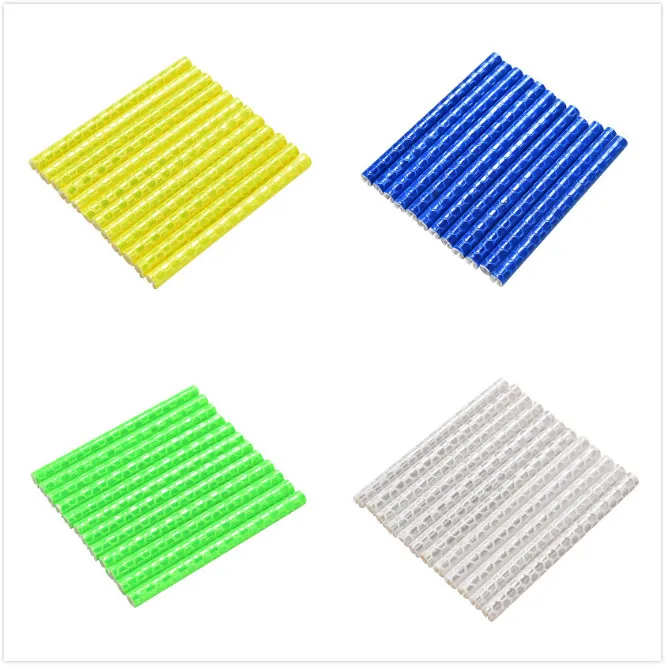 Длина: около 75 мм Внутренний диаметр. : Около 1,8-2,5 мм Внешний диаметр. : Около 5 мм Цвет: 4 цвета на выбор Посылка включает в себя: 12 x отражателей для велосипедных колес