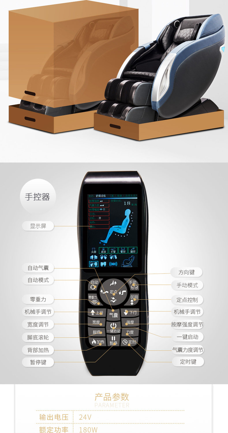 Торговая марка:SminG / Shang Ming Electric Модель:SM-818 Функция:Местная гипертермия; Регулировка силы подушки безопасности; Регулировка скорости ролика;Регулировка интенсивности массажа; Функция проверки формы тела Установка метод:Нет необходимости установки Тип часового механизма:3D манипулятор массаж Цвет классификация:Серебристый, серый, синий Материал ткани:Специальное износостойкое кожа Массажная Техника:Разминание, шиацу, массаж, Снайпер, резьба, растяжка Количество подушек безопасности:31 (включительно) - 60 (включительно) Тип рельсов:130 см SL рельс Применяемые части:Рука, шея, спина, талия, бедра, ноги Дополнительные характеристики:Встроенный динамик Bluetooth Управление метод:Дистанционный пульт Умное управление ли:Да Автомассажера для ногДва ряда роликового массажа Способ массажа рук:Встроенный рычаг Подушка безопасности Гарантийный срок:12 месяцев Нагревающаяся часть:Обхват талии нагреваДетали изображений