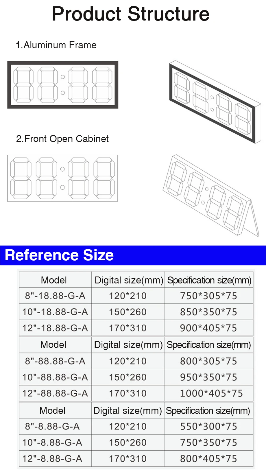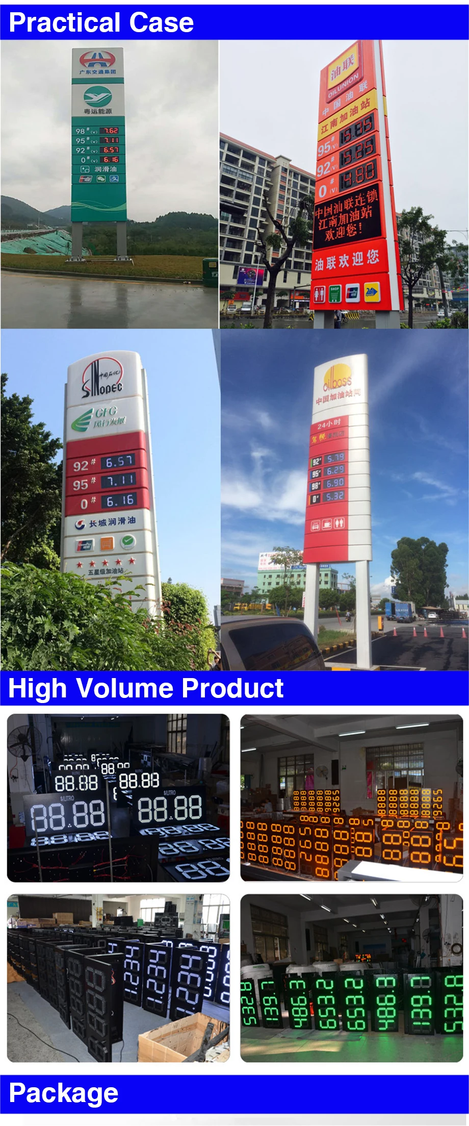 Дизайн цифр | 7 сегментов модулей герметичны клеем, достигают водонепроницаемости IP67, С Пылезащитным оттенком, который делает светодиоды нормально работать все время. |