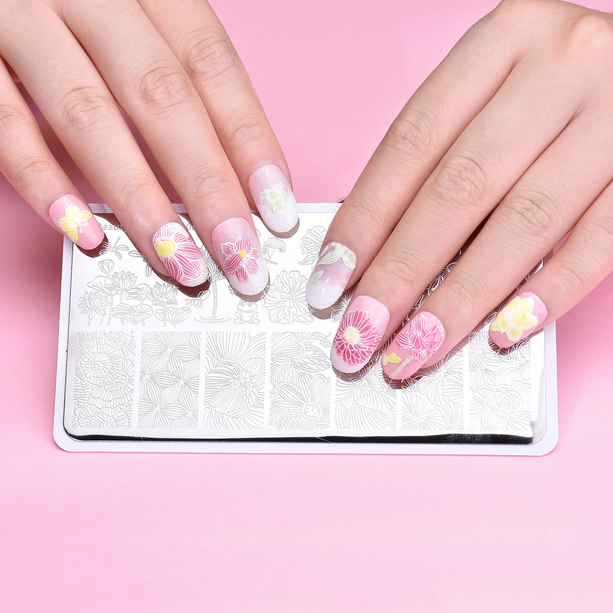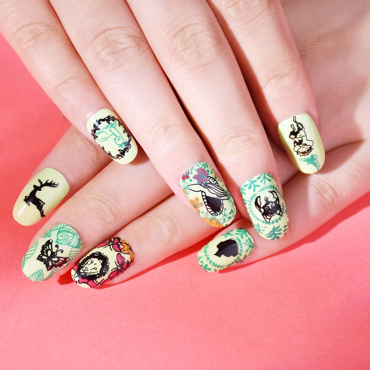 Beautybigbang 1 шт. набор штамповочных пластин из нержавеющей стали, травяной цветок, листья, дерево, изображение животных с бесплатными ноготками, шаблон для художественных наборов