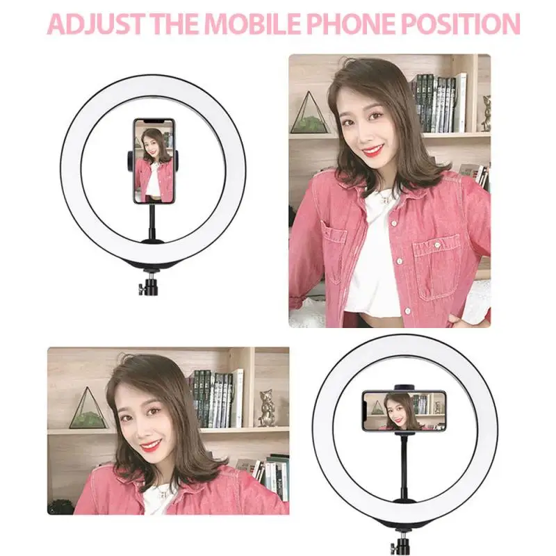 1. Светодиодный кольцевой светильник можно установить на держатель и взять его в любом месте, его также можно снять с подставки в любое время. (Держатель не входит в комплект).