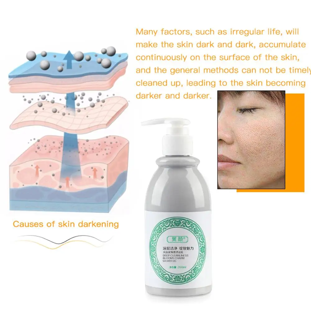 Вулканический грязевой отбеливающий гель для душа для всего тела быстрое глубокое отбеливание очищающий гель для мытья тела Уход за телом 260 мл