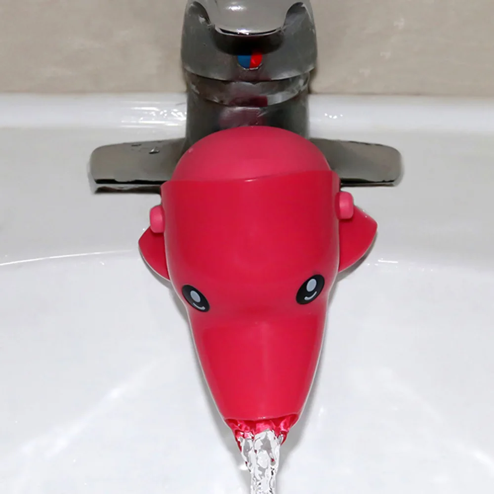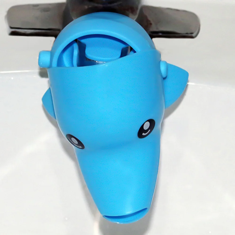 Cartoon dolphin faucet extender which is attractive to baby can help them to form good habit of washing hand frequently.