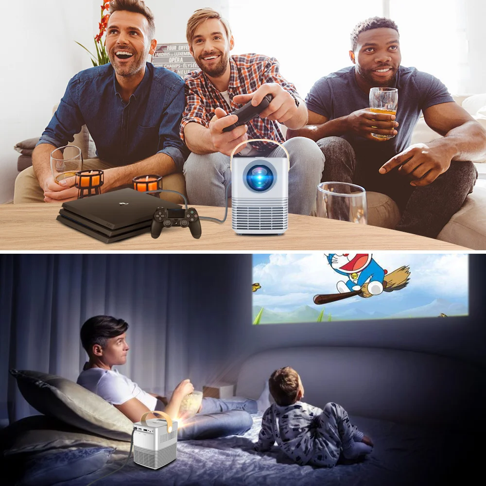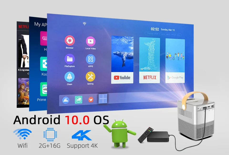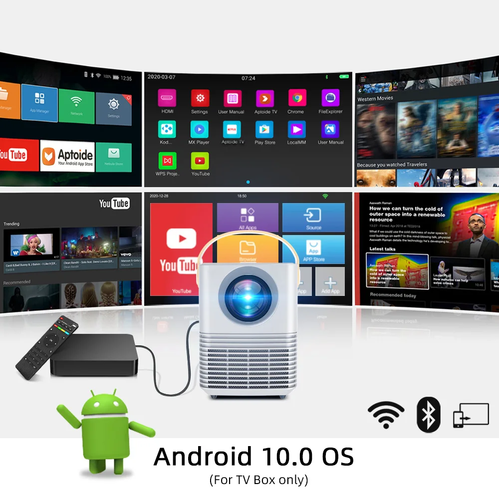 1) Беспроводные видеоигры для смартфонов (только для ТВ-бокса)2) электронный Keystone:± 15 ° Вертикальный keystone3)Встроенный аккумулятор, чтобы играть в любом месте(Только для смарт-версии и обновленной версии)4) Полностью герметичный Оптический Двигатель, пылезащитный3)Почему стоит выбрать ТВ-бокс с ОС Android 10,0:Это последняя ОС Android 10,0,Это 2 ГБ + 16 ГБ, работает быстрее,Он поддерживает 4K и Wifi Дисплей для смартфона.(Другой проектор со встроенной ОС Android-это старый Android 6,0, 1 Гб + 8 Гб, работает медленно, не поддерживает 4K)У другого проектора нет этой функции