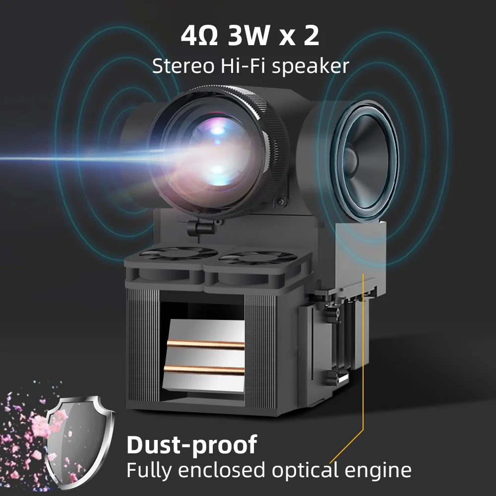 Используя полностью герметичный Оптический Двигатель,Эффективно предотвращает попадание пыли в оптические компоненты проектора,Значительно продлевает срок службы проектора