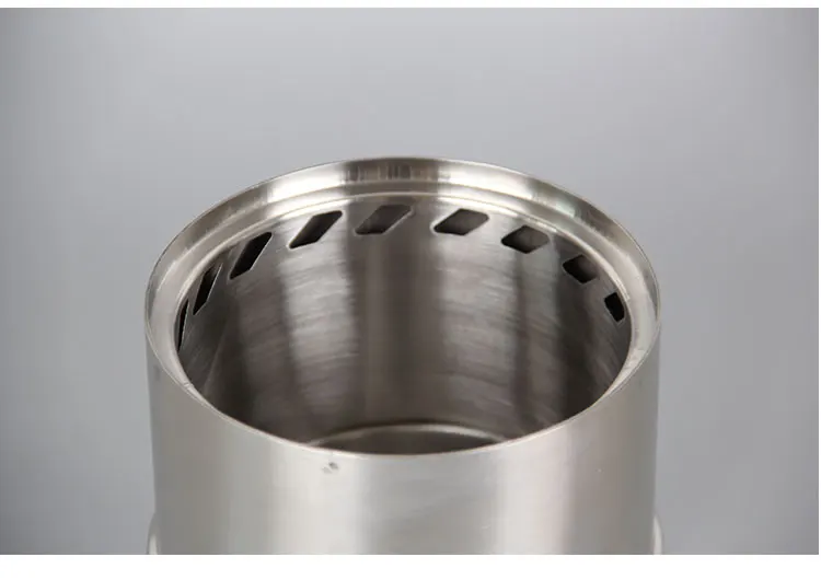 Прочная нержавеющая сталь: Изготовленная из высококачественной нержавеющей стали, эта портативная печь для кемпинга будет устойчиво гореть ярко, независимо от веса или высокой температуры