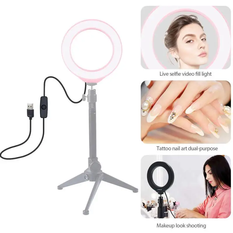 3. Usb-порты можно использовать с несколькими устройствами, такими как подключение хоста компьютера, ноутбука, мобильного питания и USB зарядного устройства. Вы сможете наслаждаться светодиодный светильник кольцо в любое время бесплатно.