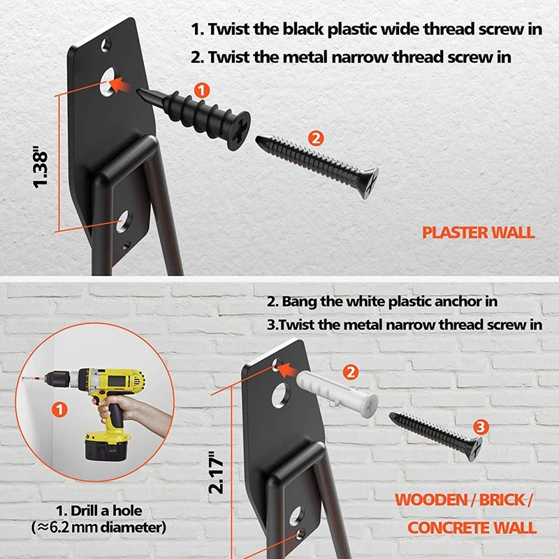 2 различных стенки серии KINW-черные широкие резьбовые винты для штукатурных стен и белые удлиненные якори для деревянных, кирпичных и бетонных стен, все требуют стальных винтов.