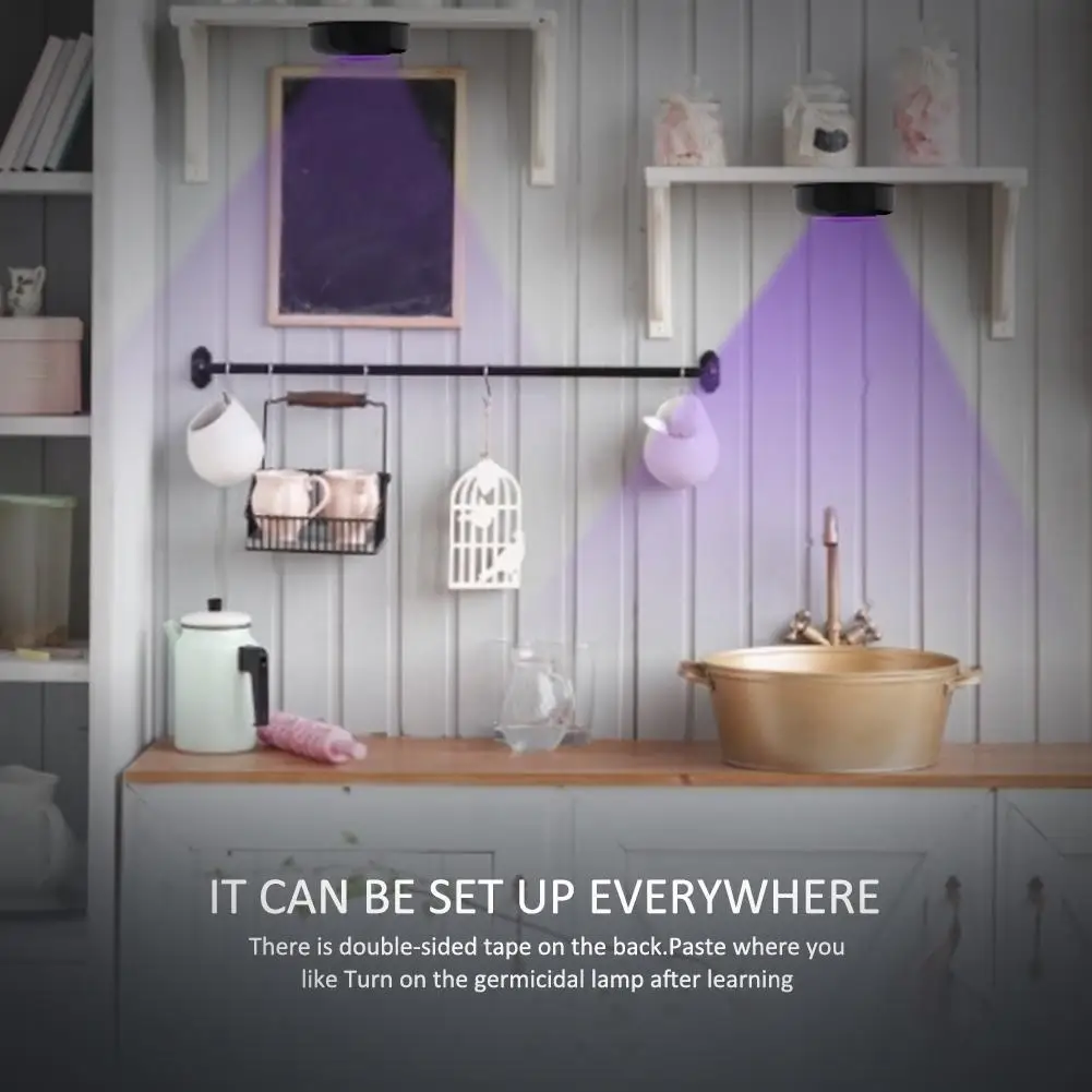 5. Простота установки: с двусторонней лентой лампа легко устанавливается; Подходит для: дезинфекции небольших пространств, таких как шкафы, обувные шкафы, автомобили и т. Д.