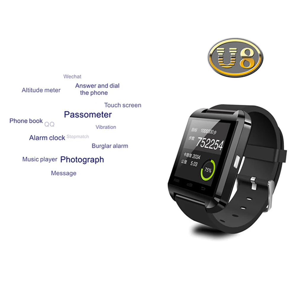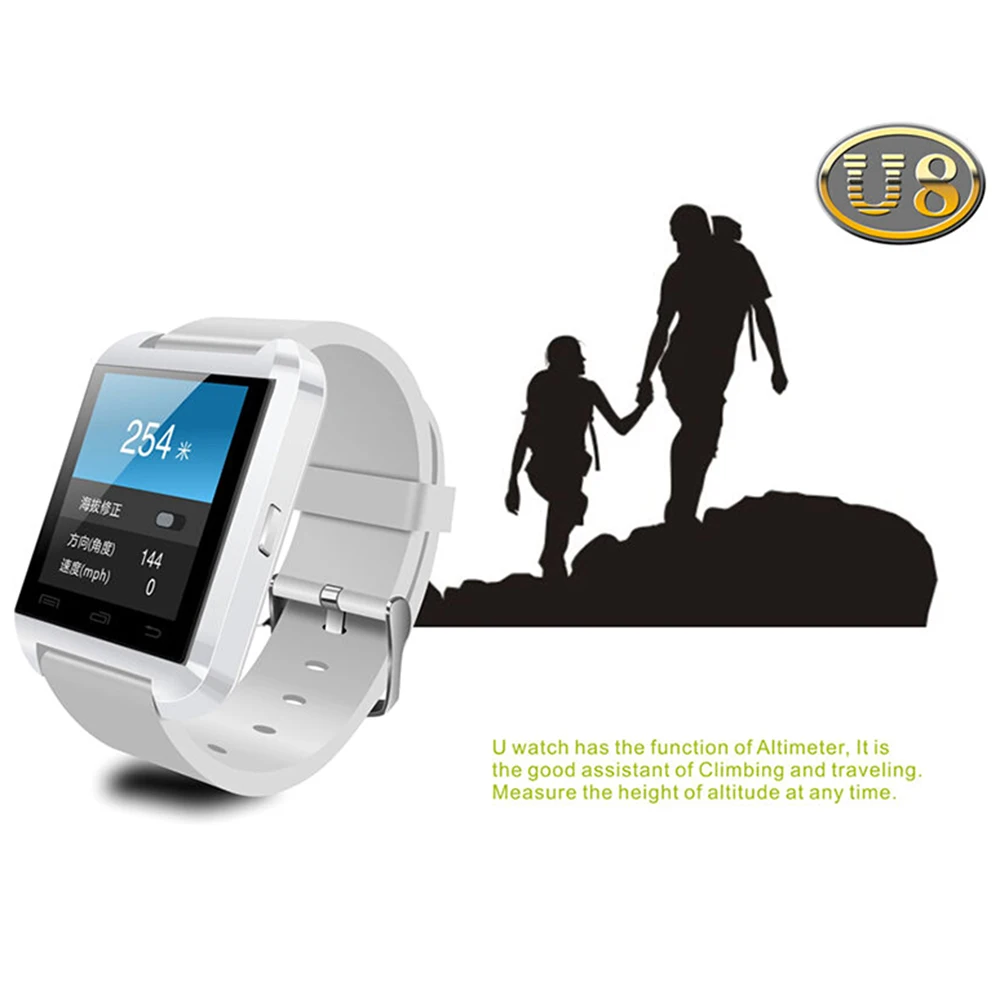U8 Bluetooth часы MTK чип высота спортивные шаги вызов Смарт часы SMS Синхронизация USB Водонепроницаемый для Android /IOS Телефон